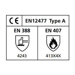 Gants de protection en cuir croûte de vachette teintée, correspond à la norme EN12477, type A.
